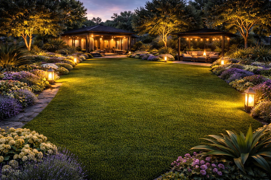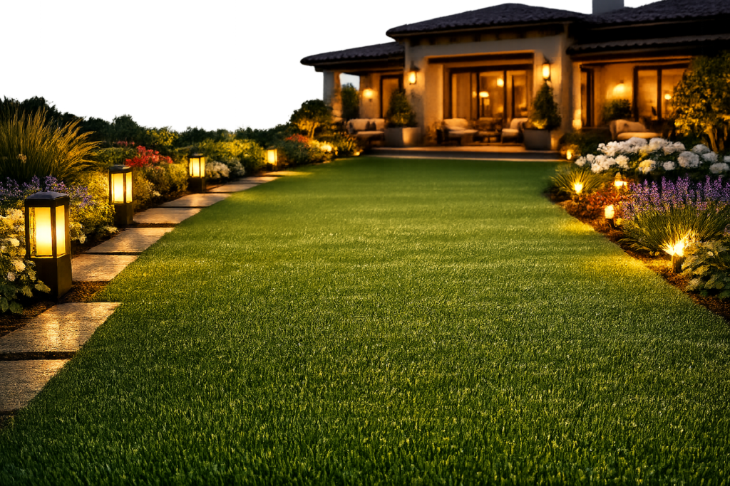Artificial grass is one of the most popular solutions for villa landscaping in Dubai. Homeowners prefer synthetic turf because it maintains a clean and elegant lawn without high maintenance requirements.