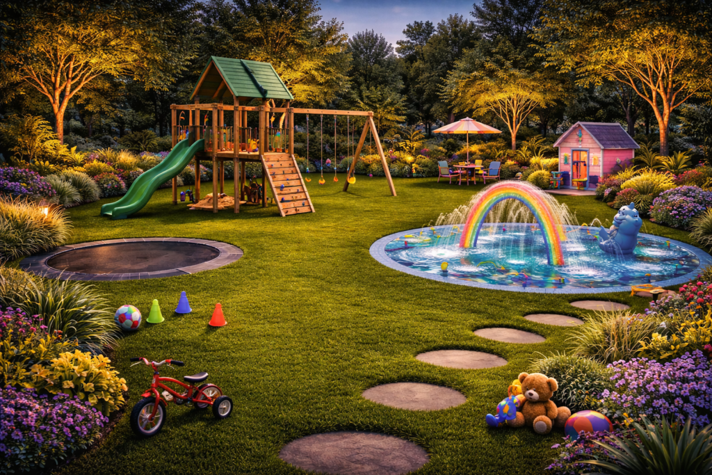 Artificial grass provides a soft and safe surface for play zones in schools, villas, and community areas.
